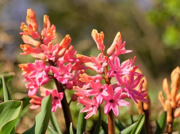 - 粉紅色風信子: 熱情、浪漫、傾慕、初戀的悸動。 這絕對是最受歡迎的顏色之一!像是‘Pink Pearl’、‘Fondant’、‘Jan Bos’(偏桃紅),開起來就是一片夢幻泡泡!送給心儀對象,或是放在家裡增添浪漫氛圍,都非常合適。它們的香氣通常也格外甜美。但要小心,粉紅色品種有時花莖較軟,容易倒伏,支撐要做好。