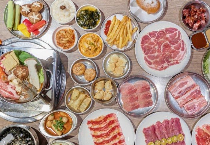 A: 落差很大!從最平價的韓式烤肉約$400-$500(未含服務費)、泰式或港點約$550-$650、一般火鍋燒肉$700-$800,到高檔飯店Buffet或和牛燒肉$1000-$1800+都有。主要看餐廳類型、食材等級跟時段(午餐通常比便宜)。