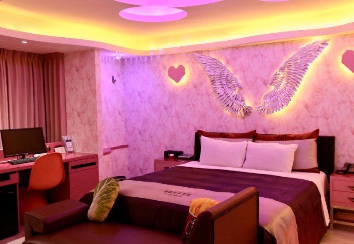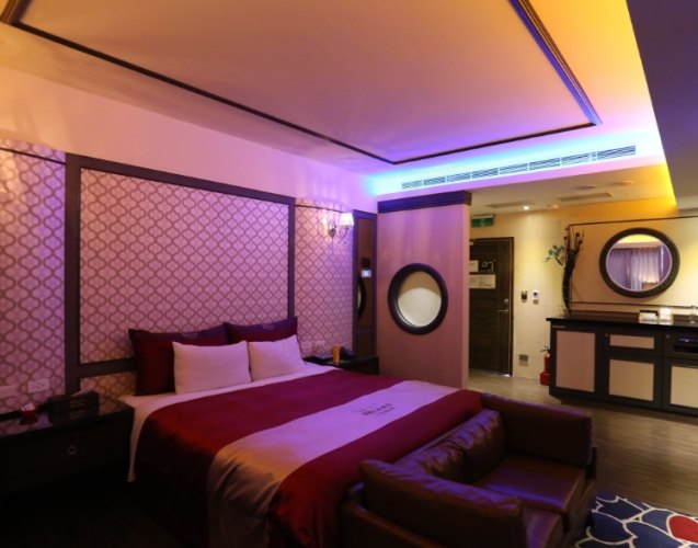 介紹:桃園區的情侶聖地,裝潢浪漫(紫色燈光、心型浴缸)。我和女友慶生住過,氛圍滿分(她超愛)。但電視頻道少得可憐(晚上只能看手機)。