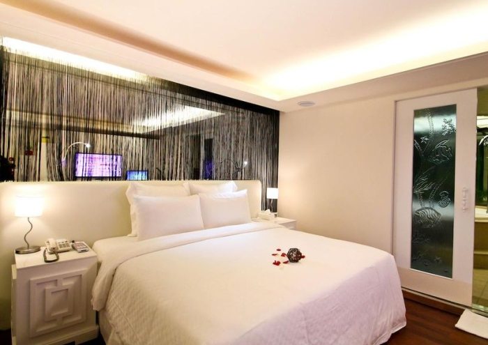 房型與價格:基本房2200元,豪華主題房4500元(含香檳)。房型有kity或星光主題(星光房天花板有LED燈),週末價高。