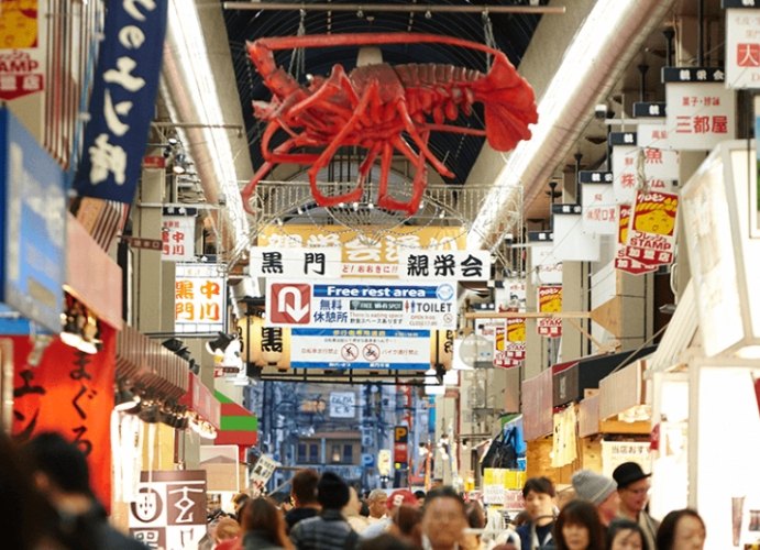 - 保持禮儀,勿邊走邊吃: 黒門市場 通道狹窄,人潮擁擠。 強烈建議不要在主要通道上邊走邊吃,容易撞到人,湯汁滴到別人身上也很尷尬。大多數立食攤位旁邊會有小平臺或角落讓你站著吃完再走。買了需要坐下來吃的東西(如海鮮丼),市場內有少數幾家有簡易座位的小店(如部分乾貨店角落),或者帶出去找公園長椅。