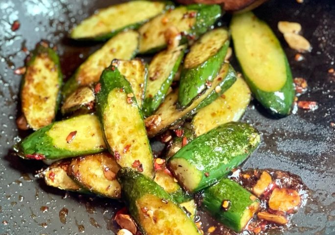 這個版本是我的最愛,蒜味濃鬱到不行!炒小黃瓜時加入大量蒜末,讓整道菜香氣撲鼻。我常在朋友聚會做這道,大家總搶著吃光。但得提醒,大蒜要用多一點,至少三瓣,少了就沒那個勁了(我有次省著用,結果味道平庸,被吐槽)。